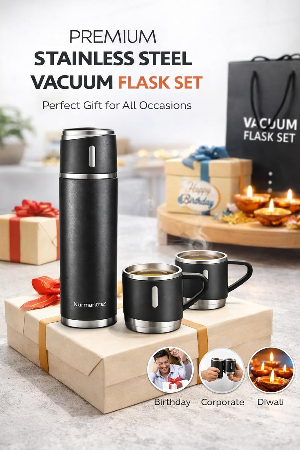 Stainless Steel Vacuum Flask Set – Insulated Thermos with Cup for Tea and Coffee, Hot and Cold, Keep Beverage Hot and Cold for 12 Hrs.