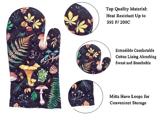 HEAT RESISTANT – Thicker oven mitts a heat resistant up to 392 F/ 200C. Well protect your hands and wrists from burns. PolyCotton,makes you feel comfortable,no stiff feeling.