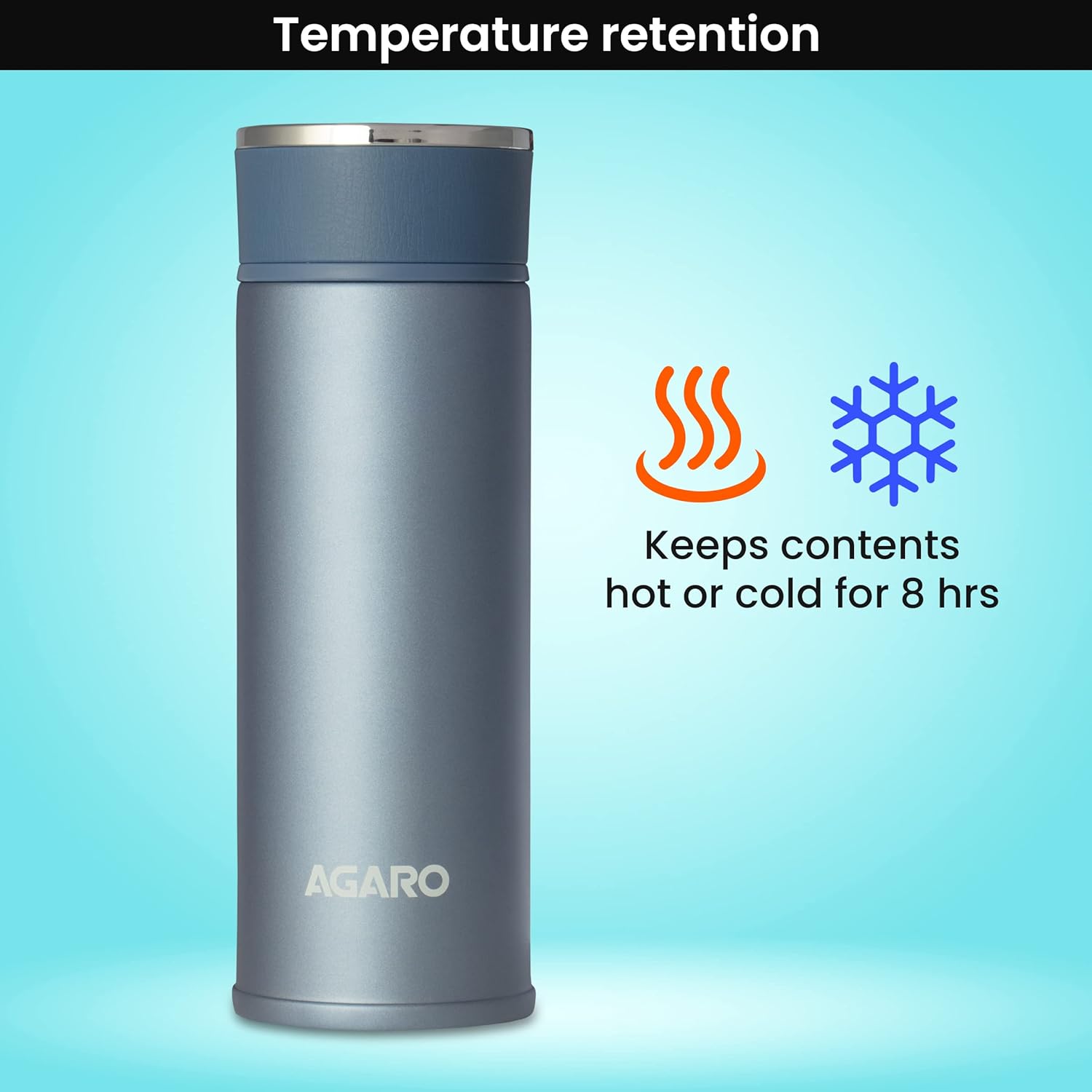 AGARO Elite Stainless Steel Vacuum Flask 480 ML, Double Walled Vacuum Insulated, Copper Insulated, 304 Grade Inner and Outer Stainless Steel Crafted, Leak Proof, Hot and Cold up to 8 hrs, (Blue)