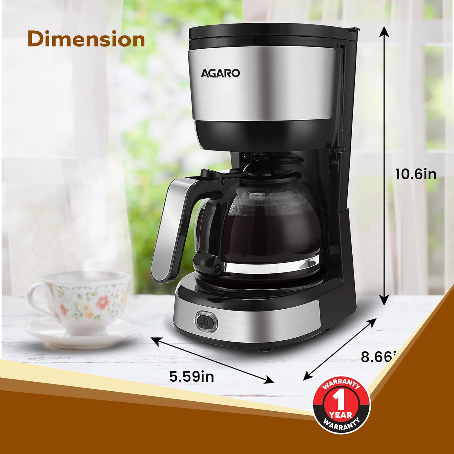 After brewing, nonstick warming plate holds coffee warm for 2 hours then auto shuts off for boil-dry protection, Anti-drip function,