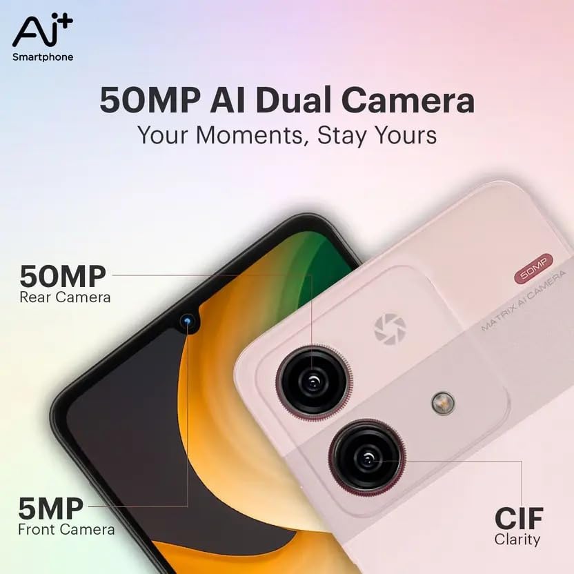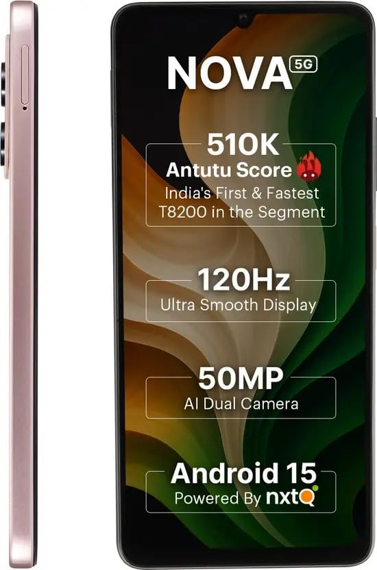 The Ai+ Nova smartphone comes with the Unisoc T8200 8-core processor with a 510K+ AnTuTu score for smooth performance. Enjoy blazing fast 5G connectivity with Dual SIM, ideal for smooth multitasking. Capture stunning shots with the 50 MP AI dual camera and watch ultra-smooth visuals on a 120 Hz screen. Powered with Android 15 with nxtQ, it offers improved speed, personalization, and built-in privacy features to safeguard your data in place.