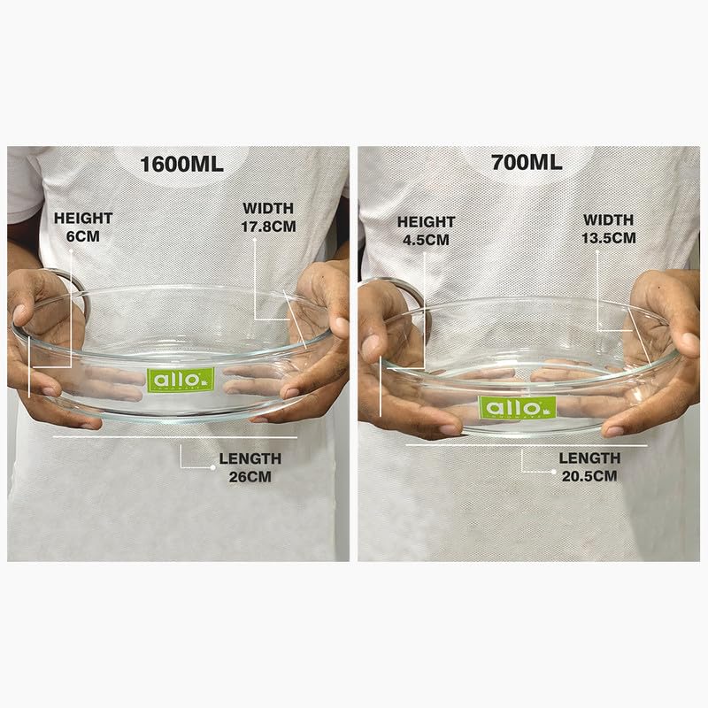 Allo Borosilicate Oval Glass Baking Dish, Baking Tray, Oven and Microwave Safe, Set of 2 700ml,1600ml Transparent