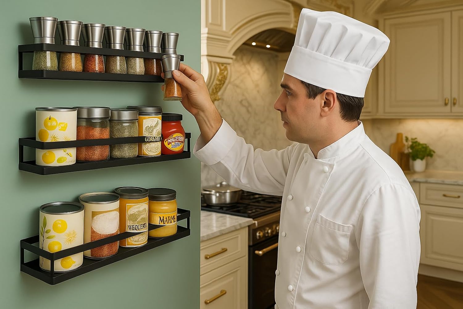 Premium Brand – Artsio Craft Store brings you a set of 2 wall-mounted spice racks designed for modern and rustic kitchens.
