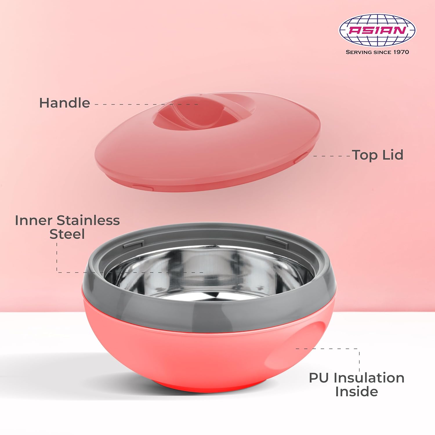 Asian Venus Inner Steel Casserole, 1000 ml, Red|PU Insulated| BPA Free | Odour Proof| Food Grade | Easy to Carry | Easy to Store | Ideal for Chapatti | Roti | Serving Casserole
