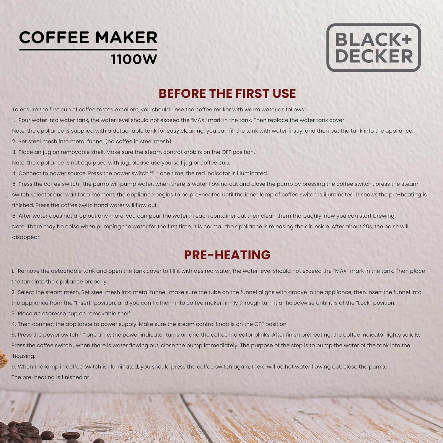 BLACK+DECKER BXCM1001IN 1100W 10-Cup 15 Bar Expresso Coffee Maker | 1.5L Water Tank Capacity | Anti-Drip Feature | Auto Keep-Warm Function | 2-year Warranty -(Black+Grey)