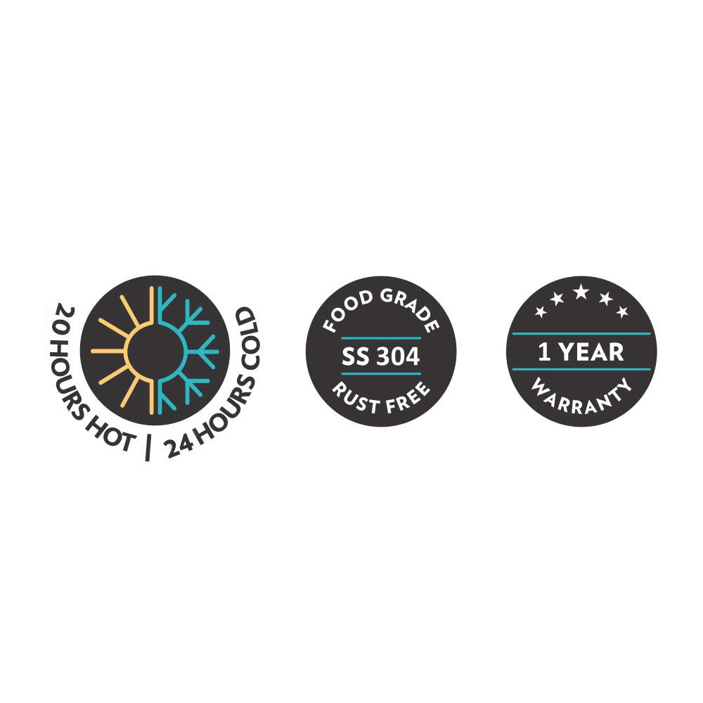 Care Instructions – Pre-fill with hot water/ice for better temperature retention, clean only with mild detergent, avoid dishwasher, carbonated & alcoholic drinks; keep uncovered when not in use to prevent odour.