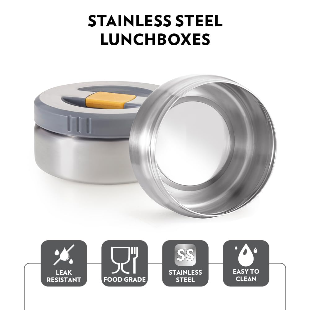 SPILL-PROOF DESIGN: Say goodbye to spilled dal or messy tiffin bases. Our steel tiffins or lunch boxes feature a spill-proof design, ensuring your meals stay securely contained during your commute or lunch break.