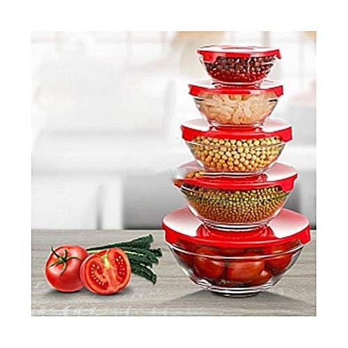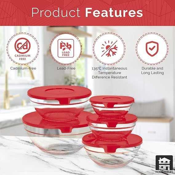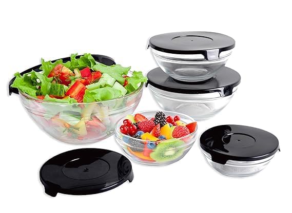 Premium Quality Glass: Crafted from high-quality, BPA-free glass, these bowls are microwave, freezer, and dishwasher safe, ensuring durability and easy maintenance. Space-Saving Design: The bowls nest neatly within each other, optimizing storage space in your kitchen cabinets. Versatile Sizes: The set includes five bowls of varying capacities, catering to all your cooking and baking needs. Secure Lids: Each bowl comes with a matching lid, perfect for storing food and keeping it fresh. Elegant Aesthetic: The clear glass design allows for easy content identification and adds a touch of elegance to your kitchenware. Borosilicate Glass Mixing Bowl Set with Lids – 5 Piece Upgrade your kitchen essentials with this premium 5-piece Borosilicate Glass Mixing Bowl Set with airtight lids. Crafted from high-quality, scratch-resistant borosilicate glass, these bowls are designed to handle all your cooking, baking, storing, and serving needs with ease. Whether you’re mixing ingredients, storing leftovers, or serving meals, these round transparent glass bowls offer both style and durability. Their heat- and cold-resistant design makes them safe for use in the oven, microwave, freezer, and dishwasher — perfect for modern, busy kitchens. Key Features: ✅ 5-Piece Set – Includes various sizes ideal for mixing, prepping, storing, or serving food. ✅ Premium Borosilicate Glass – Scratch-resistant, stain-free, and more durable than ordinary glass. ✅ Versatile Use – Safe for oven, microwave, freezer, and dishwasher. ✅ Airtight Lids – Keep food fresh longer; perfect for meal prep and storage. ✅ Space-Saving Design – Bowls nest inside one another for easy storage. ✅ Transparent & Stylish – Sleek design looks great on the table or in the fridge. ✅ BPA-Free & Eco-Friendly – A reusable, sustainable alternative to plastic containers. 5 piece glass mixing bowl set with lids Kitchen glass bowls for baking and serving Durable borosilicate glass bowl set Versatile glass containers for meal prep Multipurpose glass bowls oven and microwave safe Borosilicate glass mixing bowls Glass mixing bowls with lids Mixing bowl set with lids Oven safe glass bowls Microwave safe glass bowls Dishwasher safe glass bowls Freezer safe mixing bowls Scratch resistant glass bowls Transparent serving bowls Heat resistant glass mixing bowls Round glass storage containers Nesting glass bowl set Glass prep bowls with lids BPA-free food storage bowls