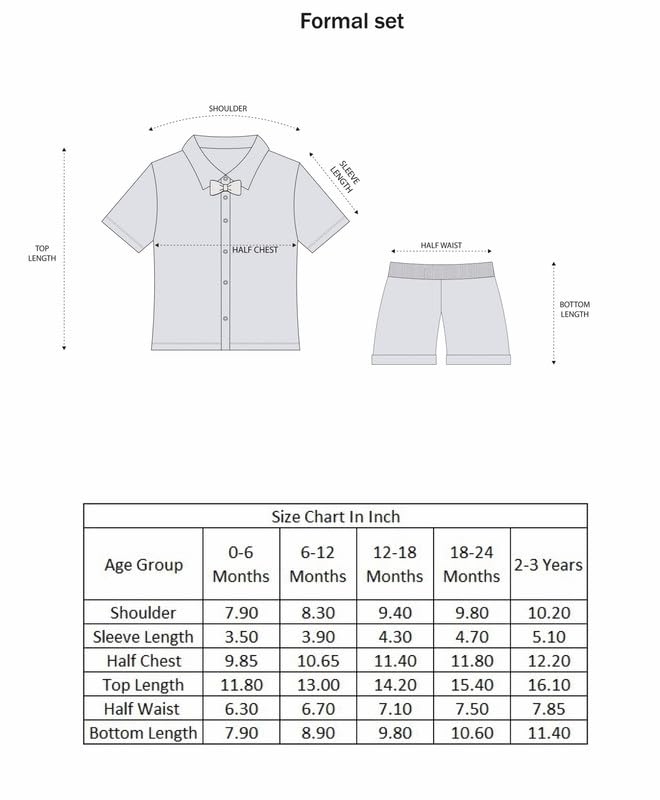 Need an instant outfit that’s ready to party? This formal set has been designed in a smart, simple way for baby boy by Bumzee. It connects the soft 100% cotton shirt and Shorts with supender and cap, as well as the matching color bow tie. Your little baby will be best-dressed at his next event in this comfy (and cute) outfit! Our baby boy party clothes will have him ready to go exploring with friends, neighbors, and cousins, and still be family-photo ready. with smart shorts and half sleeved shirt, this coordinating set is finished with a smart suspender and cap. whether your little boy wears these three pieces together or mixes them with other pieces, they are a versatile addition to his wardrobe. Note – The pocket on pant is for show only.