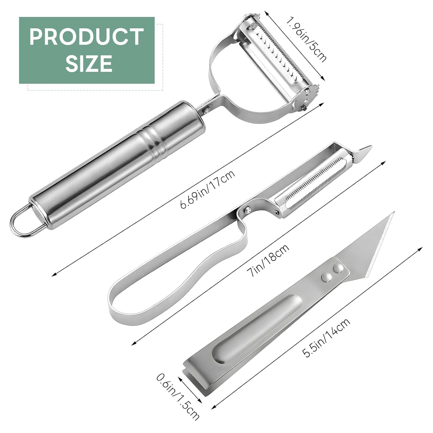 3PCS Set Multi-function Vegetable Peeler, Upgraded Stainless Steel Julienne Peeler, Carrot Potato Melon Fruit Peelers, Fruit Peeler Carrot Shredder Potato Peelers for Home Kitchen Gadget