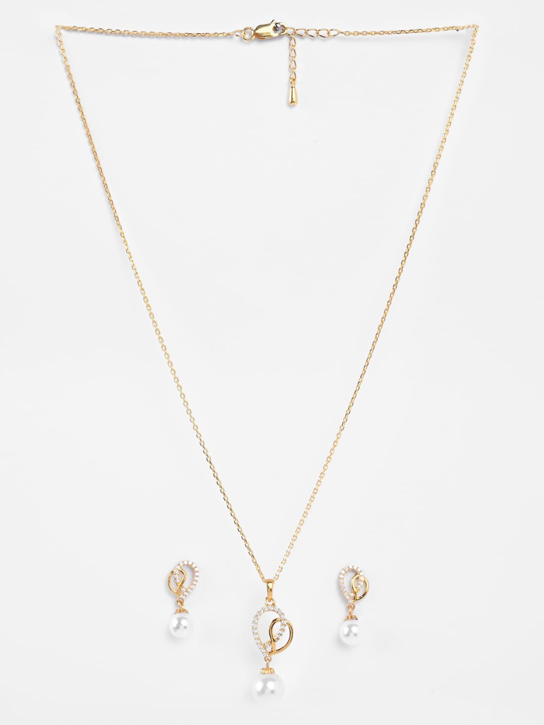 Clara 925 Sterling Silver Zahab Pearl Interlocked Pendant Earrings Chain Necklace Jewellery Set | Gold Plated, Swiss Zirconia |Gift for Women and Girls