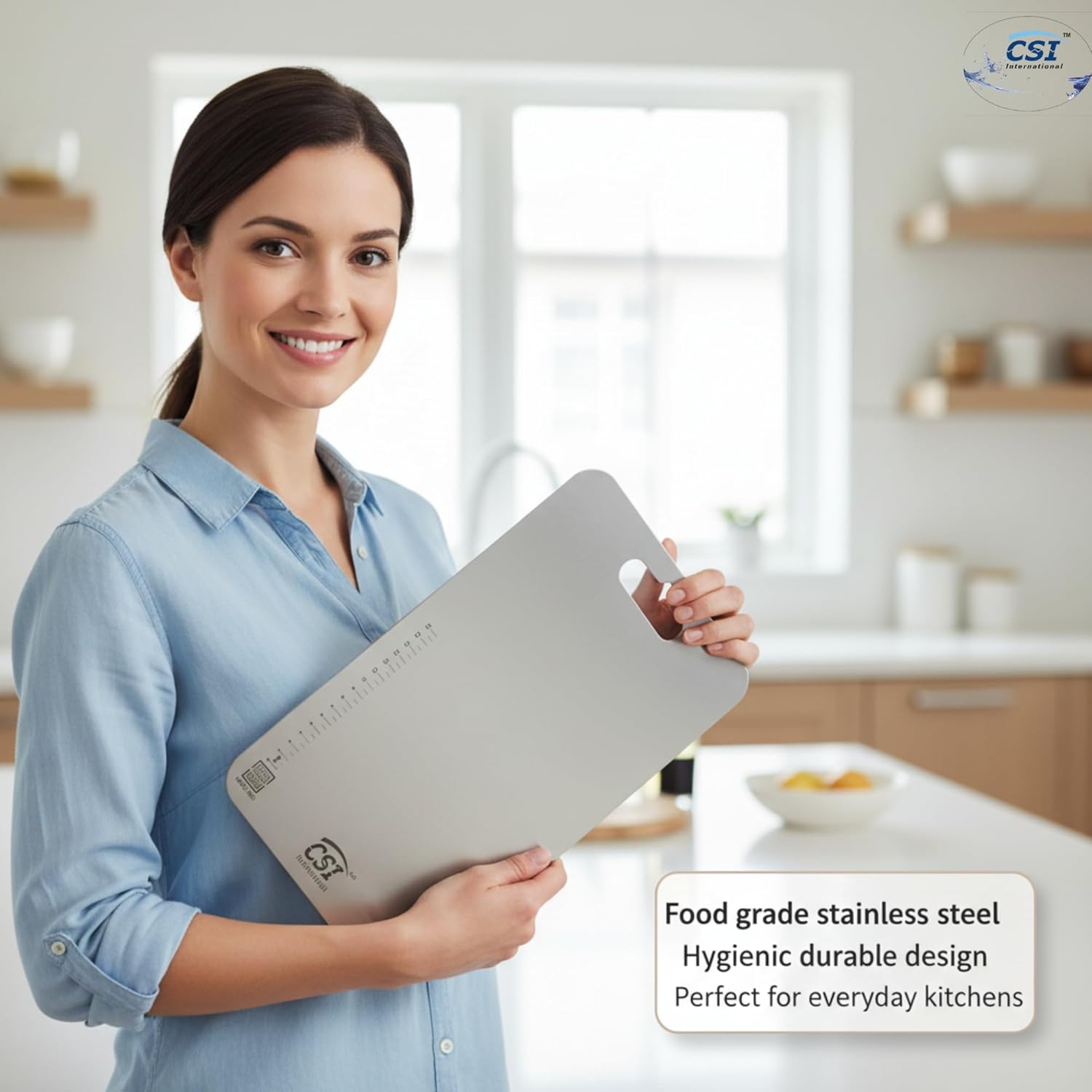 ✔ Rust Resistant & Multipurpose Use Rust-resistant design suitable for daily use; a durable and hygienic alternative to wooden or plastic chopping boards.