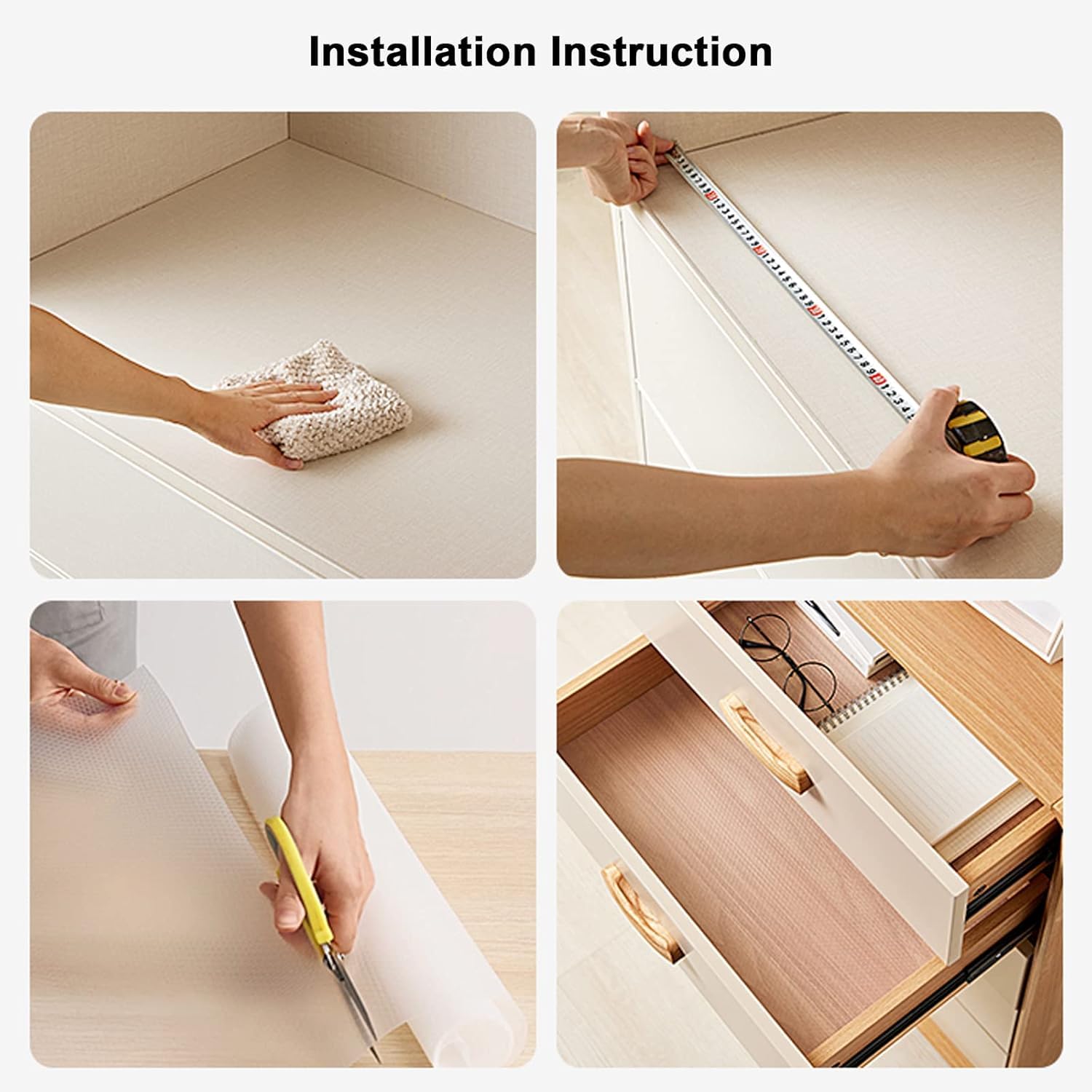 【Easy to Install & DIY】: ESPERO kitchen cabinet liner is very convenient to use, you can easily cut out the size you need with scissors or DIY into various patterns you want, not only to protect the drawer or table surface, but also to decorate the house. Is the best choice for home life.