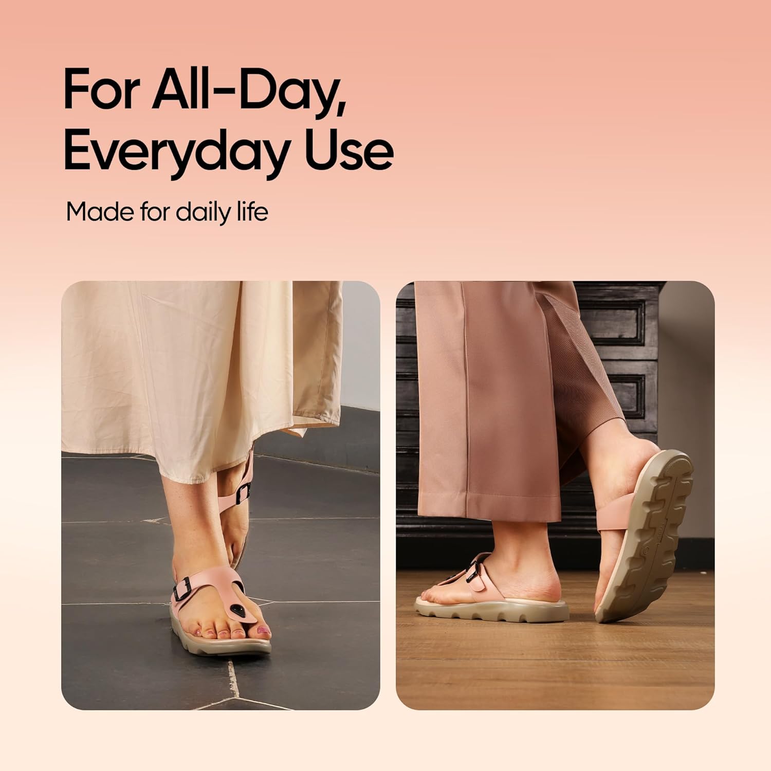 Frido Women’s Cloud Comfort Sandal— is designed for women who want everyday comfort, support, and style in one pair. Made with a strong PU synthetic upper, soft Bounce-Back cushioned footbed, and anti-slip PU sole, these sandals are perfect for daily use—whether at home, work, or while doing everyday tasks. The soft insole comes with bounce-back cushioning that adjusts to how you walk and keeps its shape even after long use. Its foot-friendly sole design supports natural foot alignment. The anti-skid sole pattern gives you better grip while walking on smooth or slightly wet floors. The adjustable buckle strap adds a touch of style while giving a secure fit for different foot sizes. Whether you’re a working woman, an older adult, or someone recovering from foot pain, these sandals provide reliable comfort and support. Available in beautiful colours—Tan, Peach, and Taupe—the Cloud Comfort Sandal is a smart choice for your everyday wear.