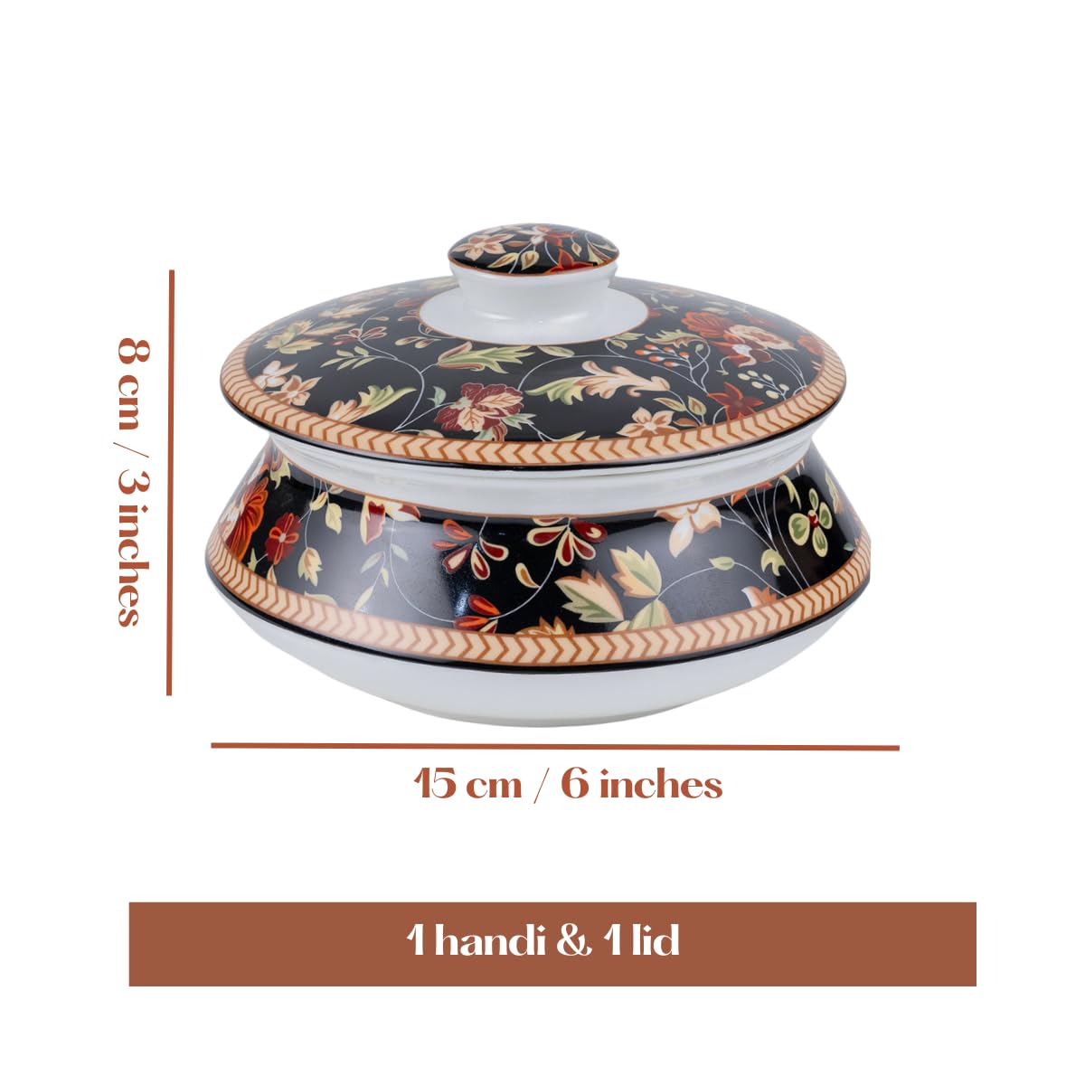 Set Includes: One beautifully designed Indian-style handi bowl with matching lid.