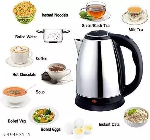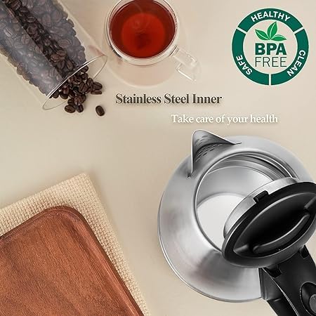 About this item Classic Design – The simple one-touch on/off switch button is easy to operate. Ergonomic handle Cost Effective – This fast-heating water boiler is BPA-free! We strive for high quality with affordable price. The tough pure metal stainless-steel build makes it very sturdy and the inside part is only made from premium food grade stainless steel that keep your water out of the contamination from plastic materials and chemicals. 2L,1.5L,1,2L Capacity – The electric kettle has a total capacity of 2,1.5,1.2 liters and consumes 1,400 watts of power but only for a short period so it can save more time for boiling in the long run. You can easily and quickly use it to prepare your coffee, hot tea or milk at anytime and anywhere. Safety Design – Equipped with auto shut off and boil-dry protection safety engineering technology with the three-prong plug. This water kettle can be lifted off the base for use without the hazard of cords and the handle comes with a soft non-slip material and a heat resistant design. EASY CLEAN: Use white vinegar, baking soda, water, cleaning bottle brush and microfiber cloth to clean your electric kettle and keep it looking new.