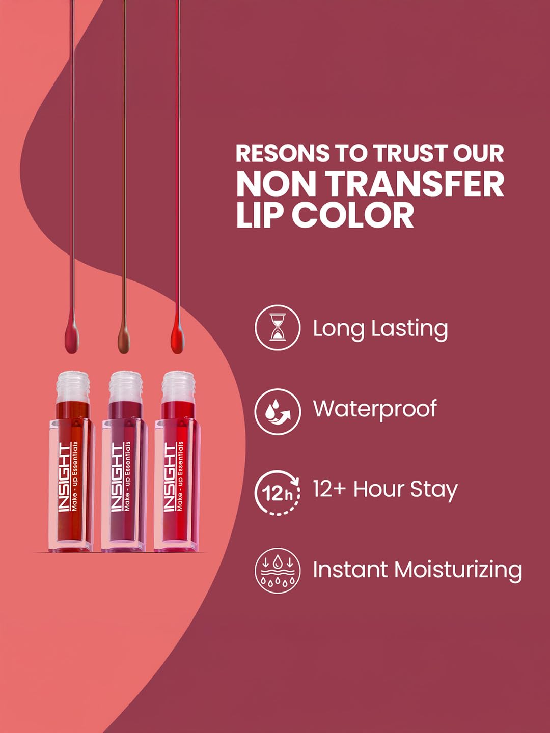 THIS SOPHISTICATED NON TRANSFER LIP COLOR FORMULA GLIDES ON FLAWLESSLY IN ON SMOOTH APPLICATION, WITH NO NEED FOR SECOND COAT. IT DELIVERS IMPRESSIVELY LONG LASTING, VELVETY COLOR THAT WILL NOT TRANSFER AND STAY ALL DAY LONG. THE WEIGHTLESSNESS FORMULA WILL PROVIDE YOU WITH COMFORTABLE WEAR FOR 24 HOURS, THAT DOESN’T CAKE, FLAKE OR DRY OUT ENSURING A FLAWLESS LOOK. ITS NON-TRANSFER AND SMUDGE FREE PROPERTY LEAVES NO TRACE ON CUP, GLASS OR CLOTH.THE HYDRATING BASE HELPS TO MOISTURISE YOUR LIPS AND PREVENTS THEM FROM EXCESS DRYING.IS 100% VEG AND PARABEN FREE
