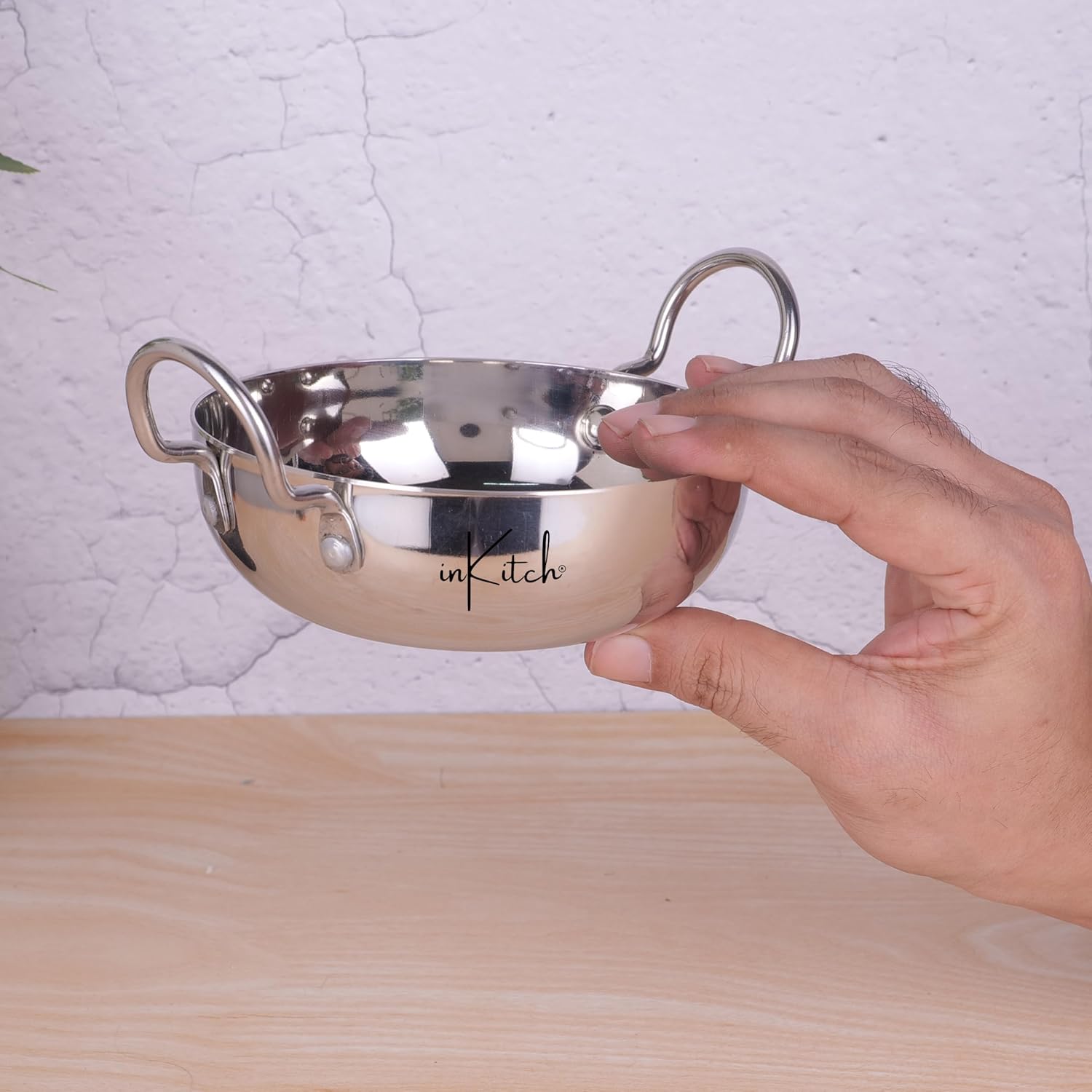 inKitch Stainless Steel Mini/Baby Kadhai for Everyday Cooking – 400ml, 13cm, Extra Thick, SAS Heavy Bottom