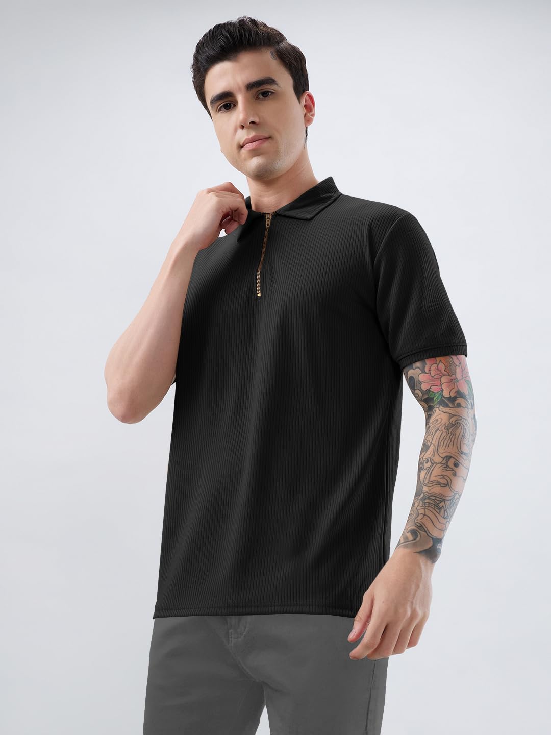 KAJARU Men’s Polyster Blend Regular Fit T-Shirt with Half Sleeve Chain Polo Collar V-Neck Standard Length and Classic Style