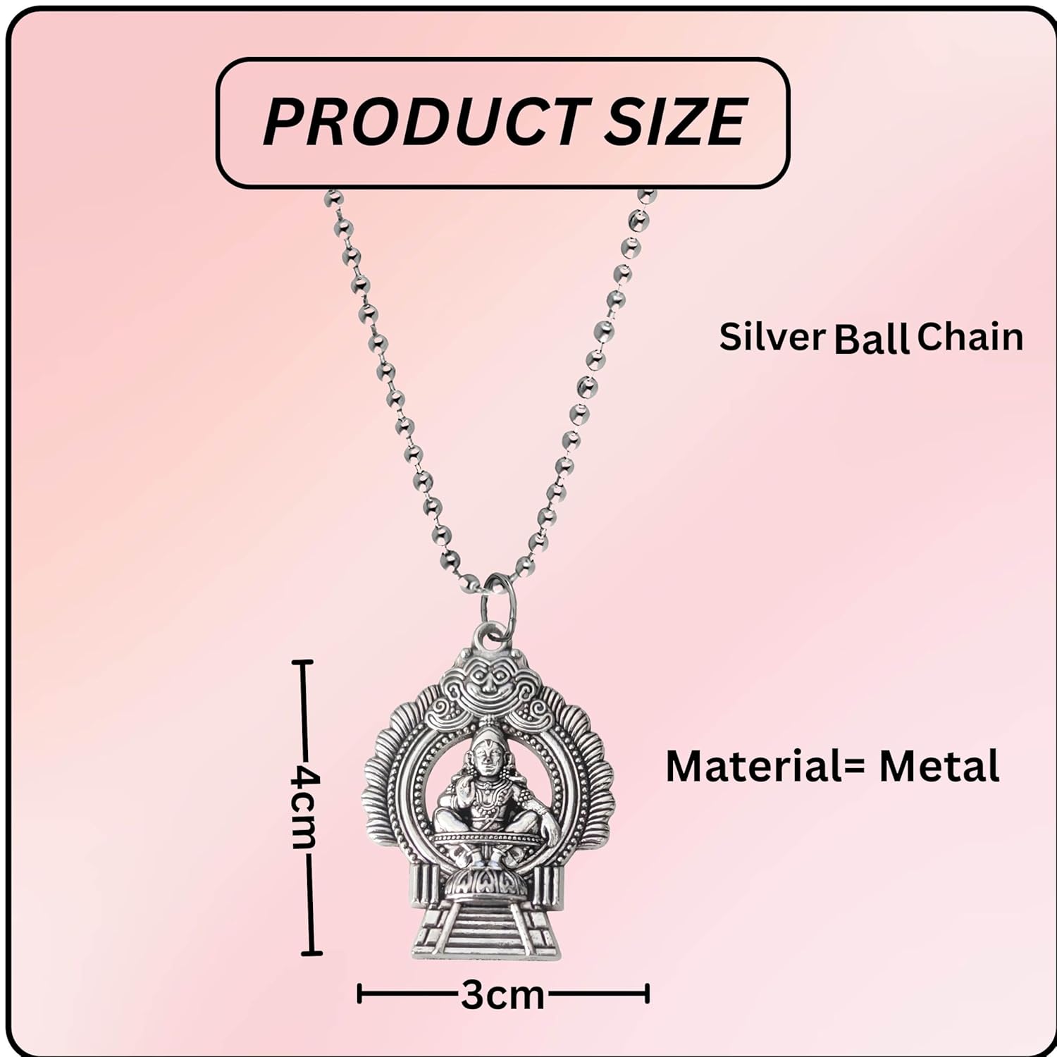 M Men Style Lord Ayyappa Metal Pendant Chain for Men & Women | South Indian Temple Jewelry | Gold Plated Devotional Locket Necklace | Religious Gift Silver SPn2025447