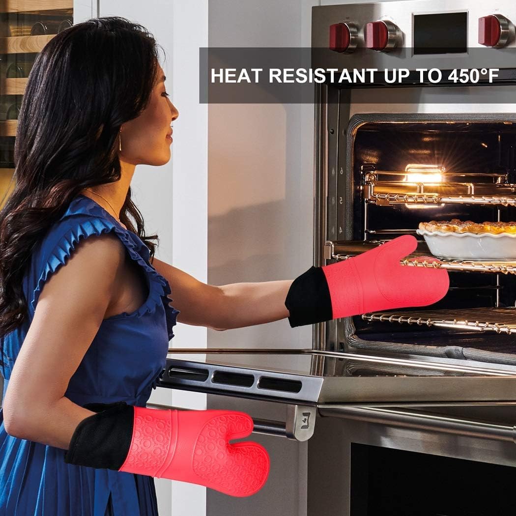 ✦Anti-Slip: Cooking rubber oven mitts feature textured surfaces, which provides good grip for holding heavy trays, pots and utensil.