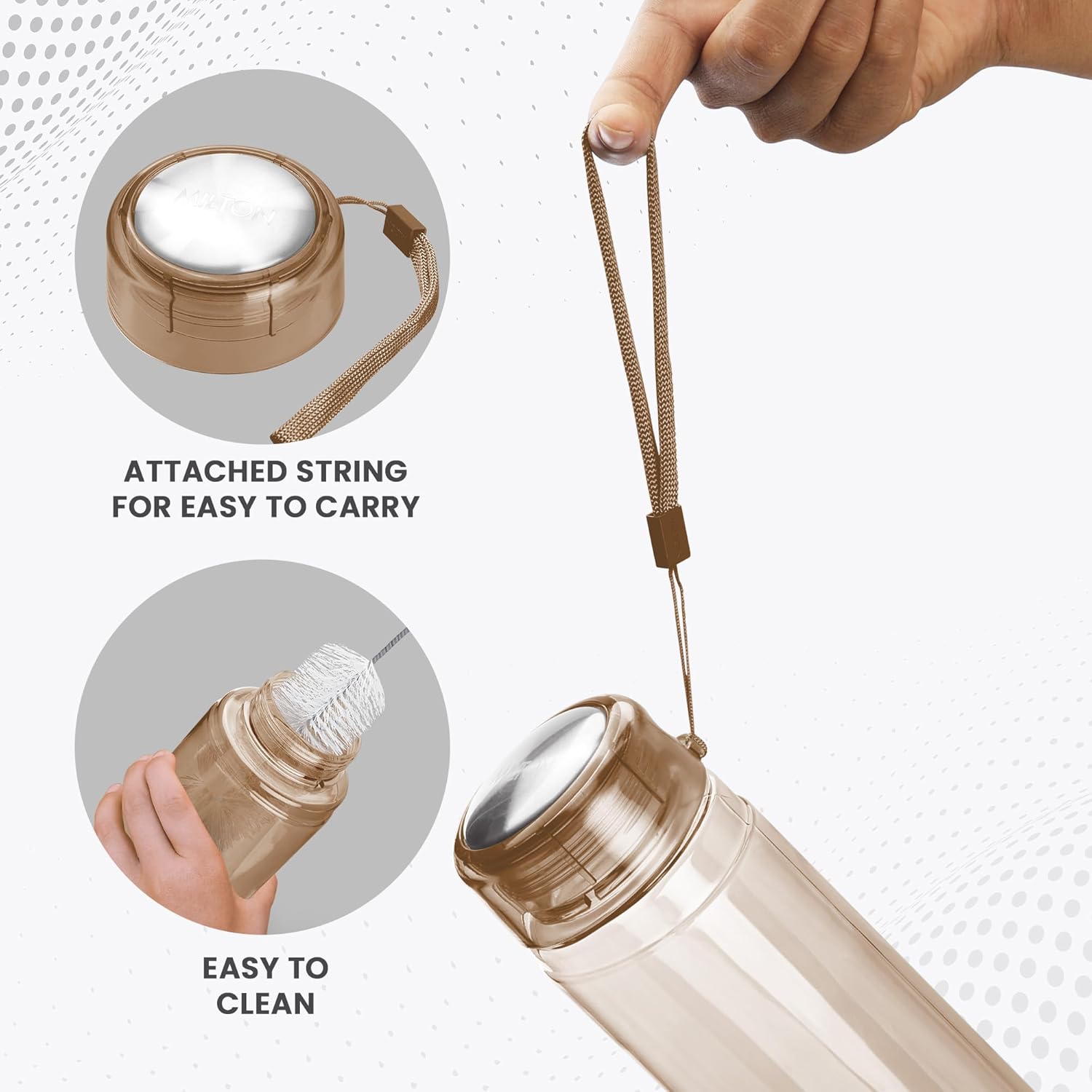 MILTON Hector 1000 Water Bottle, 1 Litre, Reusable Plastic Fridge Bottle, BPA Free and Leak Proof Bottles for Travel, Work, Pack of 1, Brown