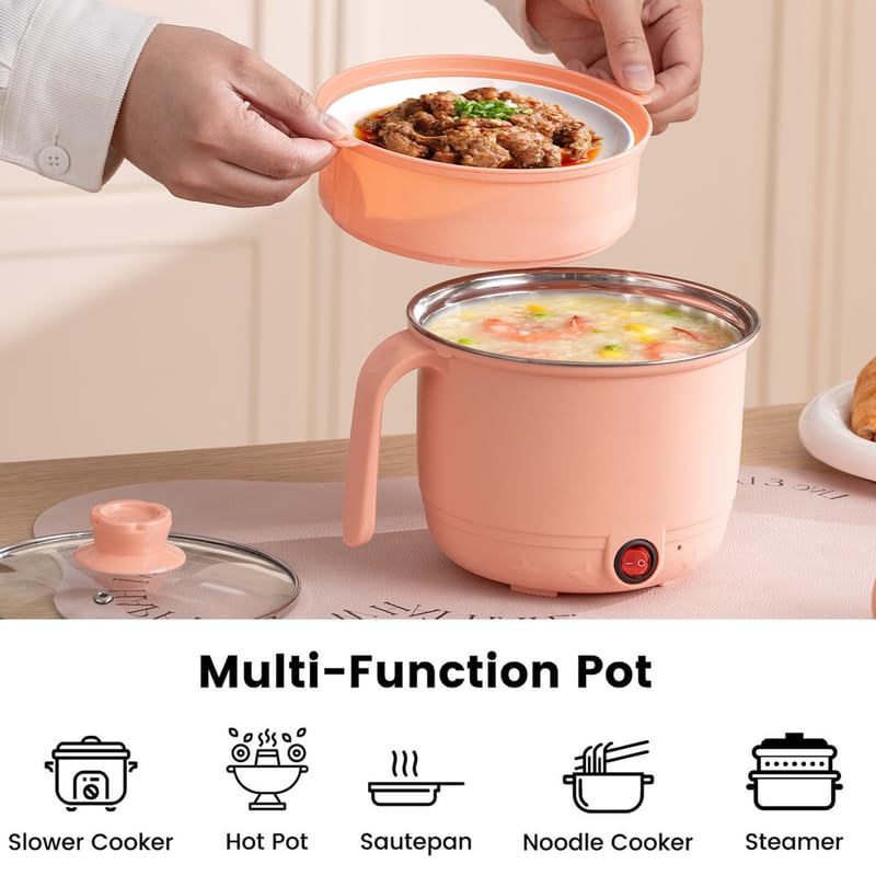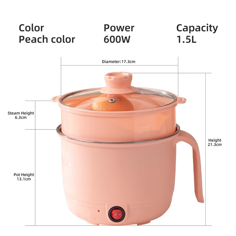 Multipurpose Electric Pot 1.5L Mini Hot Pot for Rice, Egg & Soup – Non-Stick Multi Cooking Kettle (Peach)