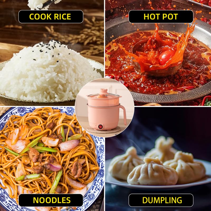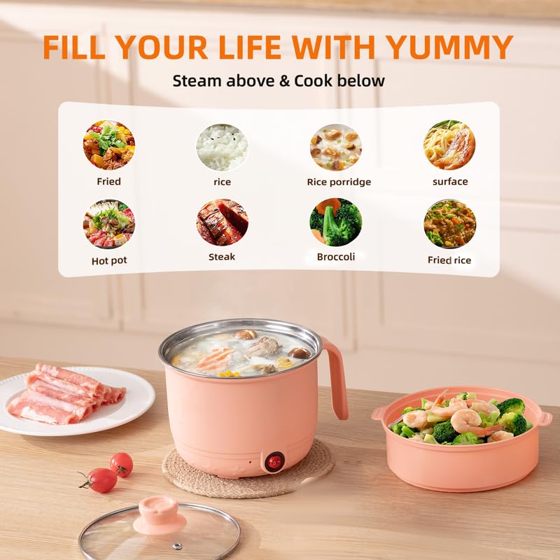 Boil Water & Beverages – Quickly heat water for tea, coffee, or instant soups.Cook Instant Noodles & Pasta – Enjoy delicious ramen, spaghetti, or macaroni in minutes.Steam Vegetables & Dumplings – Retain nutrients while preparing healthy meals with the removable steamer tray.Fry & Sauté – Fry eggs, vegetables, or meat with minimal oil for healthier cooking.Prepare Hotpot & Soup – Make comforting broths, slow-cooked stews, and flavorful soups.Cook Rice, Oats & Porridge – Enjoy perfectly cooked rice, oatmeal, and porridge for a nutritious meal.Deep Fry Snacks – Fry small portions of chicken nuggets, fries, or pakoras effortlessly.Egg Cooking Function – Use the included egg rack to boil multiple eggs at once, perfect for breakfast or meal prep.