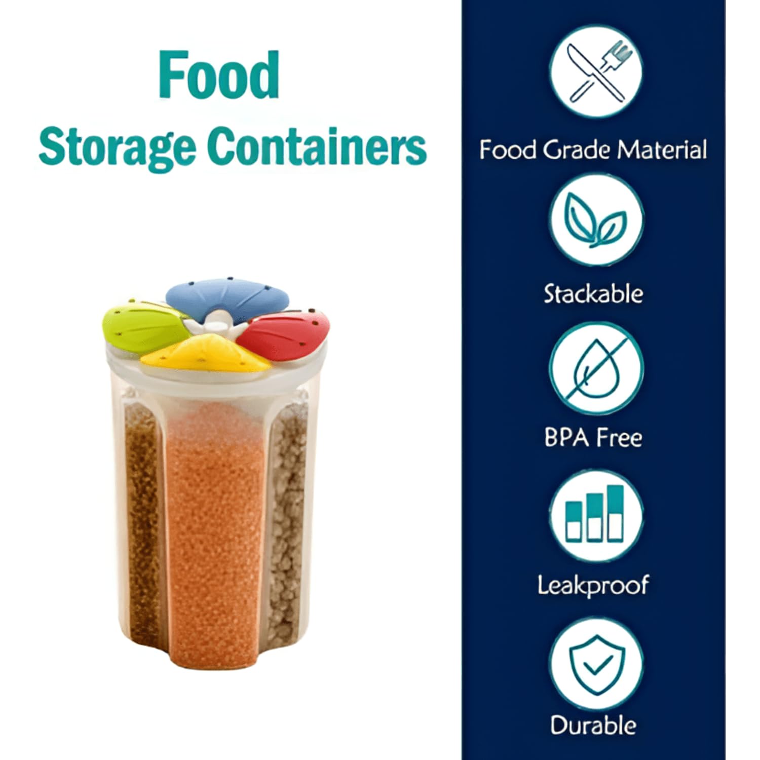Well-Organized Kitchen : Say goodbye to cluttered cabinets and messy pantries with these well-organized storage containers. The four-in-one design allows for efficient storage of different food items in one convenient container. Keep your kitchen neat and tidy by easily categorizing and accessing your stored ingredients.