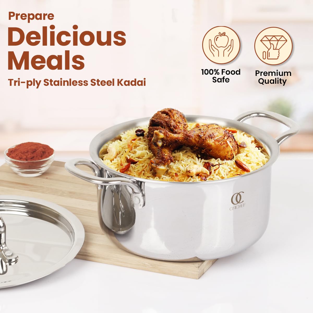 Advanced Triply Technology – 3-layer construction (stainless steel – aluminum core – stainless steel) ensures faster heating, even cooking, and long-lasting durability.