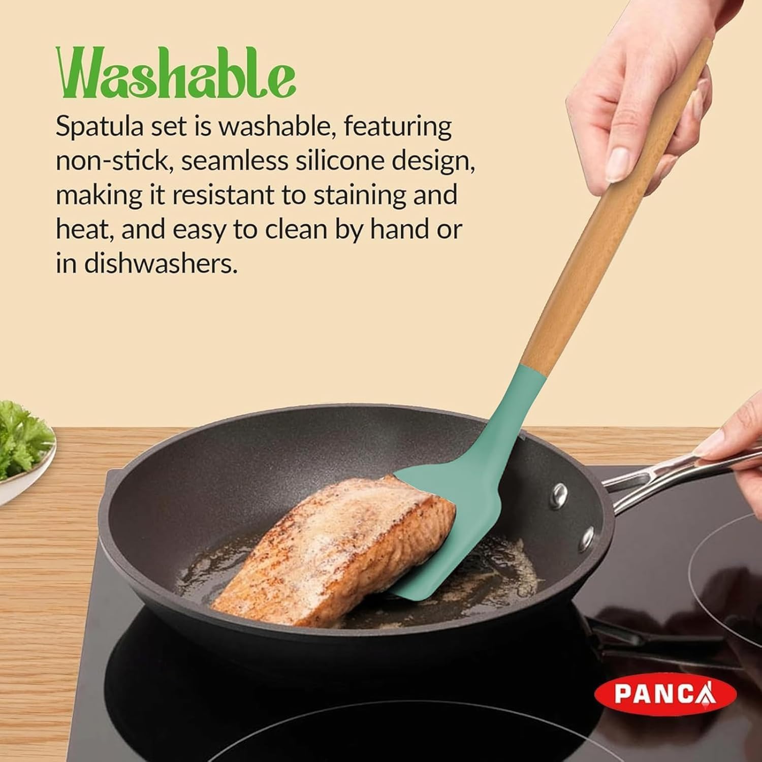 The PANCA Silicone Spatula Set is made from high-quality, heat-resistant silicone, ensuring durability and flexibility. Safe for all non stick cookware, it prevents scratches and enhances your cooking utensils collection.