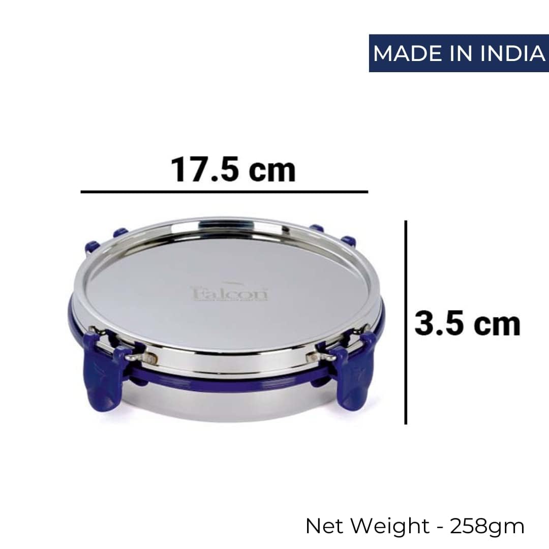 PDDFALCON EcoNxt Stainless Steel Lunch Box Set,Airtight Lids,100% Leakproof With BIS Certified, Jindal Seal & Made In India Perfect for Office, School, Travel, Set of 1 – Blue (350ml-6.1)