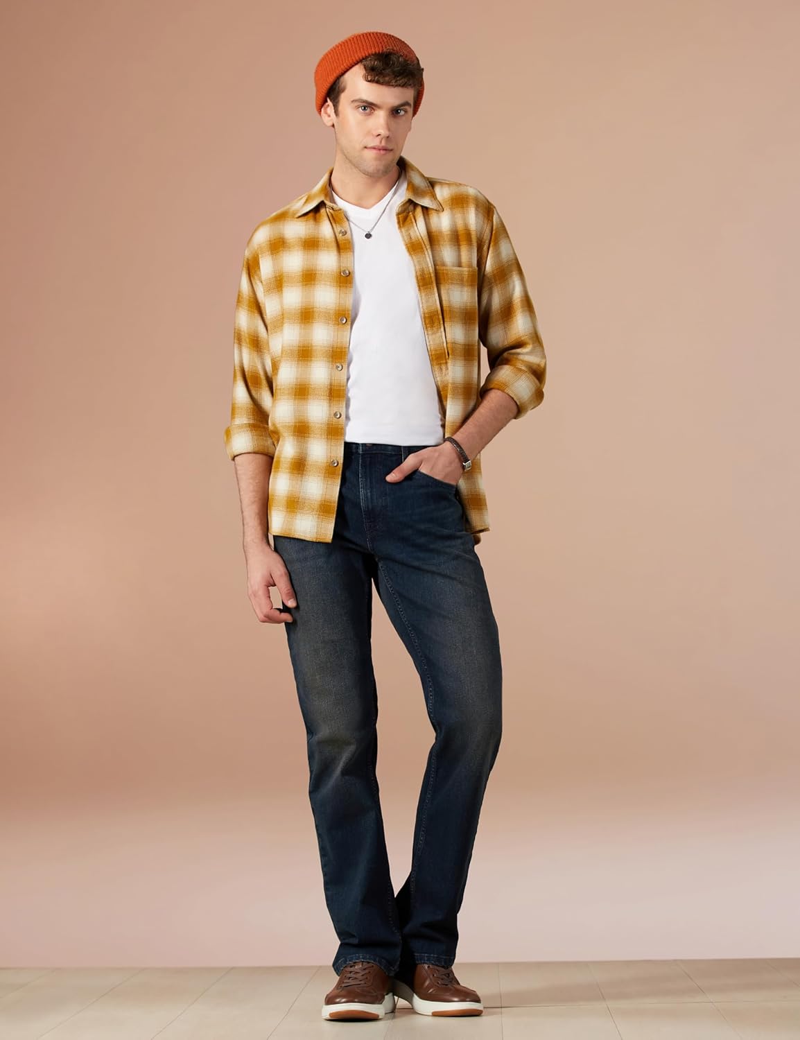 Add a fresh twist to your wardrobe with these brand carrier jeans for men, which are designed to bring a modern flair to classic denim. Crafted from a cotton blend with stretch, these mid-rise jeans offer all-day comfort and flexibility. The 90s-inspired straight-leg cut and regular fit create a timeless, laid-back look. Tailored in a crisp Blue colour, these men’s jeans are perfect for a bold, clean style. Team these white straight-leg jeans with a navy crew neck, woven belt, and leather slip-ons for a fresh summer style.