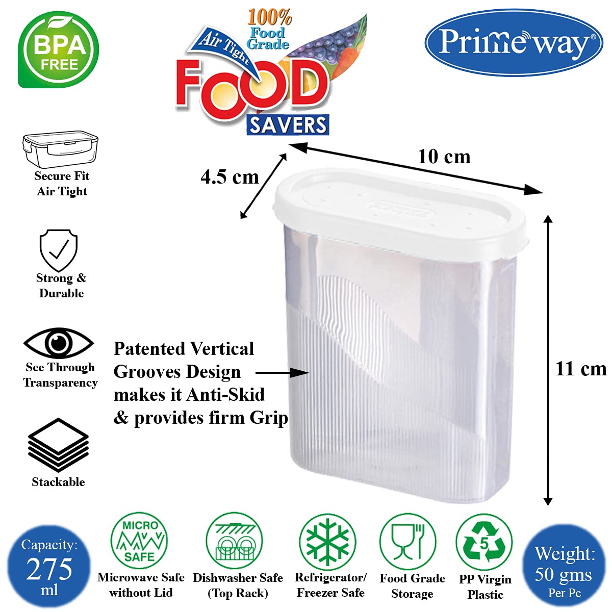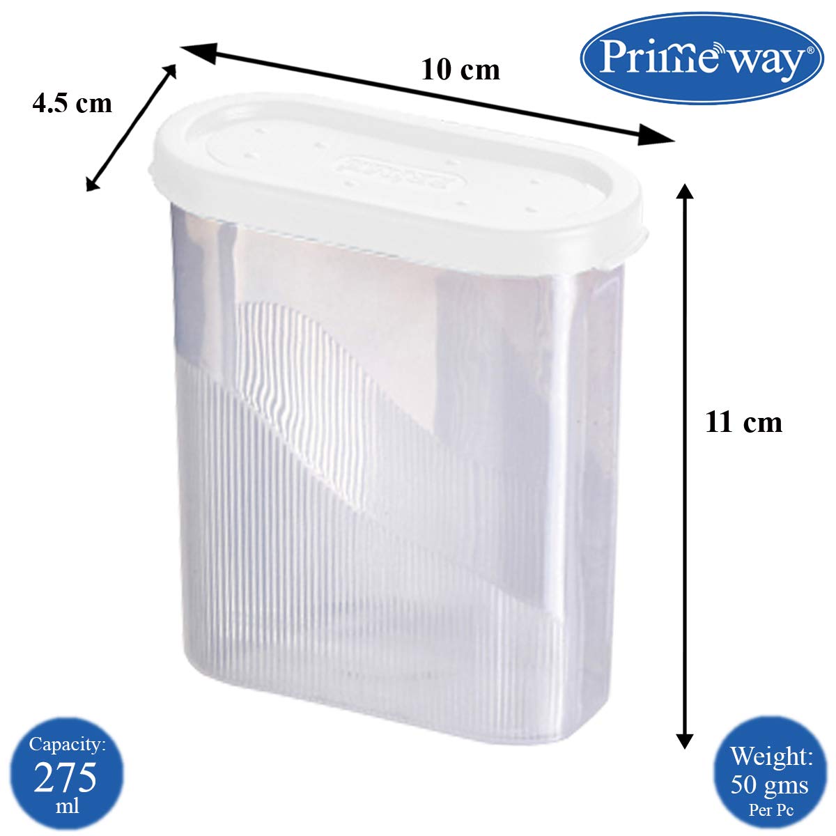 Primeway® Polypropylene Food Boxes | Space Savers | Fridge Spices Packets Storage | Modular Masala Containers | 275ml each | Pack of 6 (White)