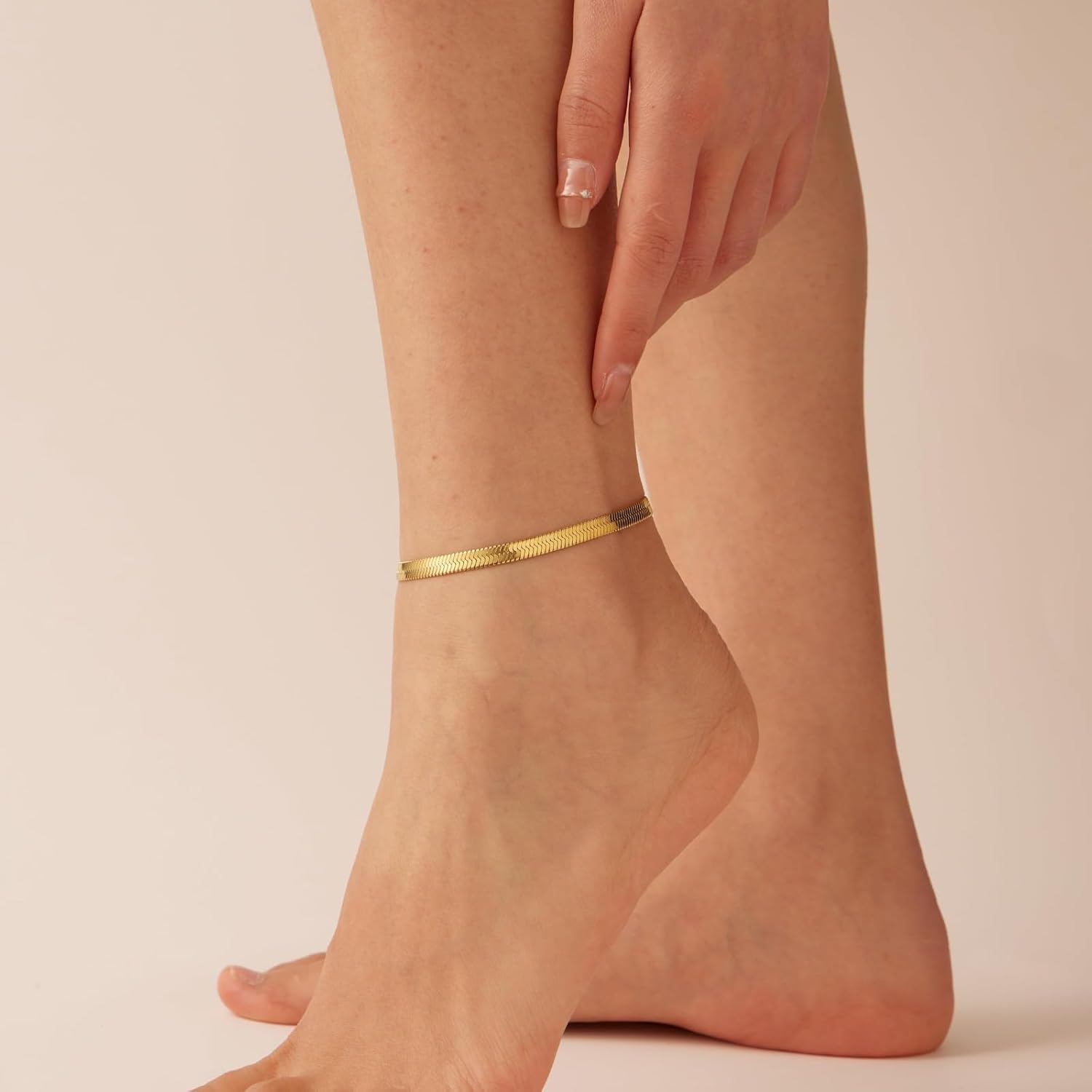 The anklet’s flexible design ensures a comfortable fit, while the lustrous hue lends an air of elegance. Whether dressing up for a special occasion or simply adding a touch of glamour to your everyday look, this herringbone anklet is a versatile accessory that effortlessly complements your personal style. Lightweight and easy to wear, it’s the perfect finishing touch to your ensemble.