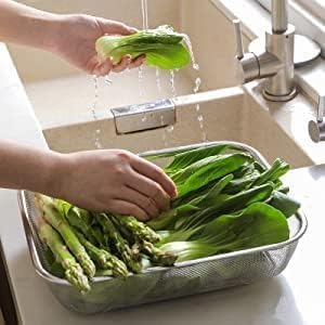 This professional stainless steel rectangle strainer with a fine mesh basket is your best helper, including filtering, straining, drying, and draining dishwasher safe, and it can also be cleaned easily with soap, water, and a dish brush.