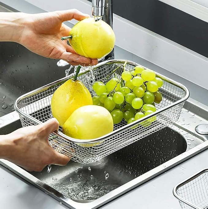{OVER THE SINK} – Over the Sink Colander Strainer Stainless Steel for kitchen,Rectangle Stainless Steel mesh Basket, for kitchen tasks including filtering, straining, drying and draining.