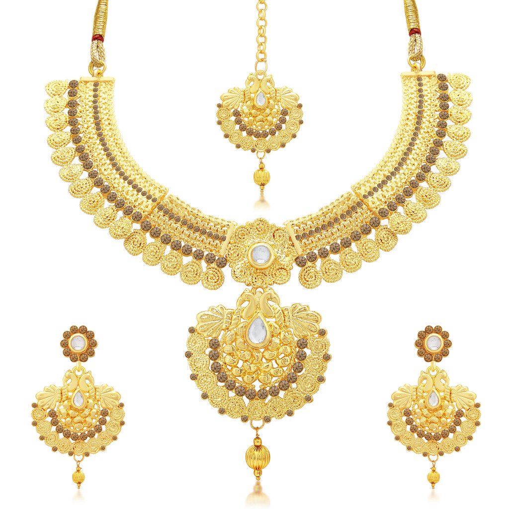 This sukkhi modish temple gold plated necklace set for women is made of alloy, women love jewellery; specially traditional jewellery adore a women, they wear it on different occasion, they have special importance on ring ceremony, wedding and festive time, they can also wear it on regular basics, make your moment memorable with this range, this jewel set features a unique one of a kind traditional embellish with antic finish.
