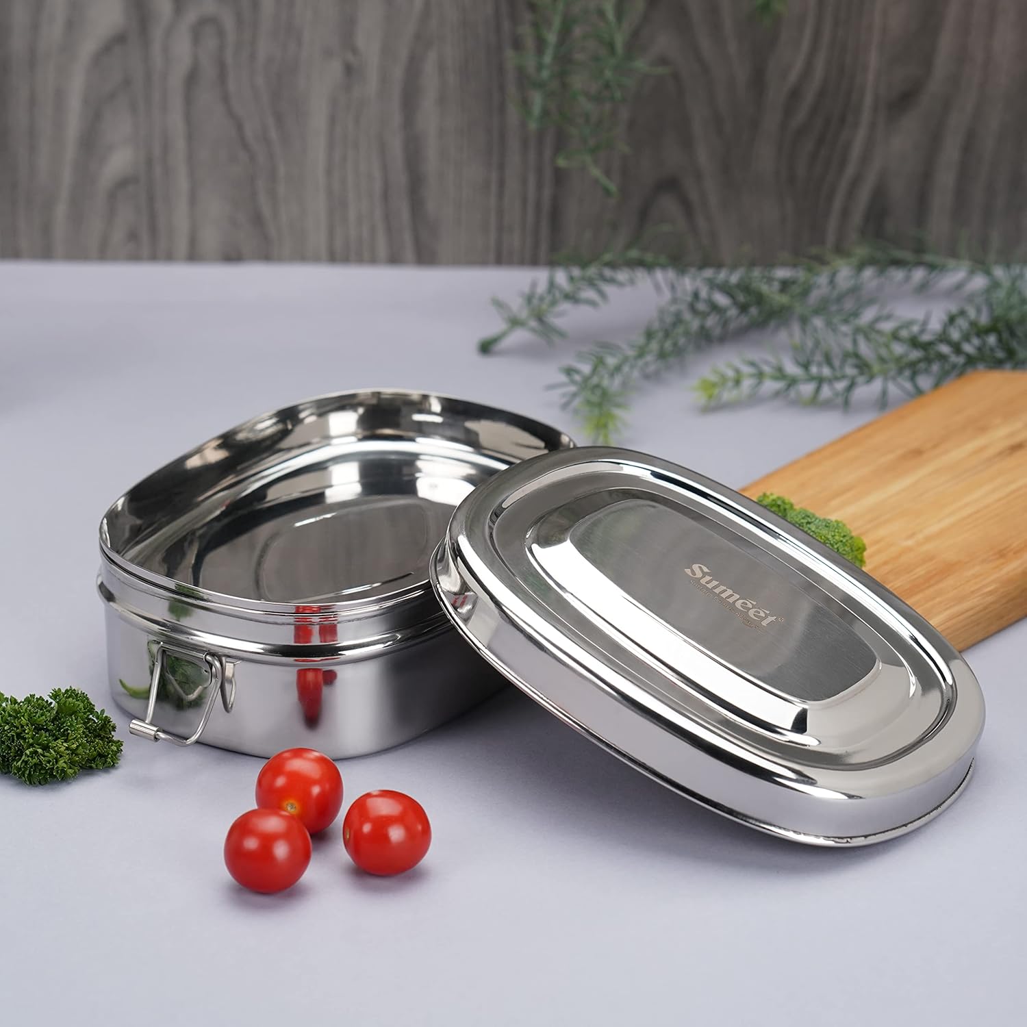 “An ideal Lunch Box with stainless steel is extremely usable and handy presentation from the house of Sumeet. Meal pack allows you to easily pack a nutritious Lunch / Meal for you and your family. This Stainless-Steel Rectangle clip Tiffin comes with 1 Separator Steel Plate for Separating Rotis or Salad etc.