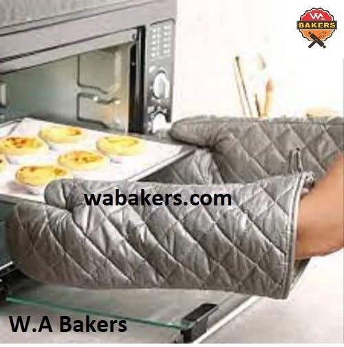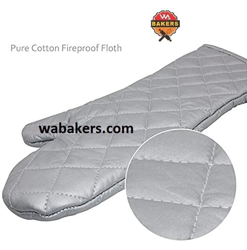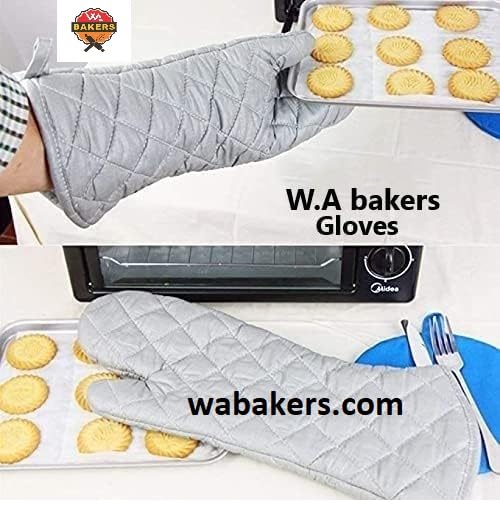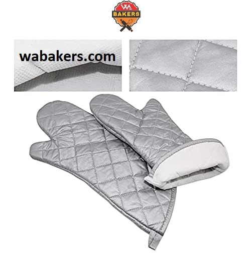 W.A bakers trustable brand provides you Heat Resistant Cooking Oven Glove is an indispensable accessory for any commercial kitchen. With its nice to feel cotton lining and silicone-coated cotton exterior, this mitt is convenient for frequent use.Featuring heat resistance, it will secure your hands from the contact with heated surfaces when lifting, holding or getting heavy hot pots and pans out of the oven. .It is long and large enough to fit anyone from your kitchen staff. The loop hook allows to hang it on a wall rack to keep it always at hand. Machine washable.