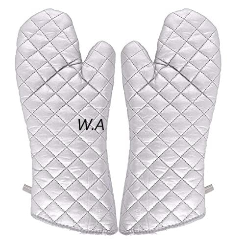 W.A Bakers Oven Gloves Heat Proof Microwave Heating Silver Coated Extra Long Oven Mitts, Heat Resistant for Kitchen Cooking, Grilling, Baking Pack of 2. (Silver)