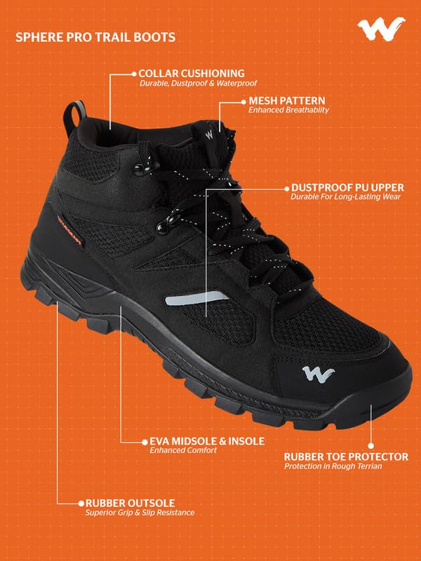 The Wildcraft Trekking Shoes are built for rugged outdoor adventures, offering a perfect blend of durability, comfort, and performance. Made from high-quality synthetic materials, these shoes are lightweight yet tough enough to handle rough terrains. The breathable mesh upper ensures ventilation during long treks, keeping your feet cool and dry. Designed with an EVA midsole for superior cushioning and shock absorption, they reduce fatigue and provide all-day comfort. The rubber outsole delivers excellent grip and traction on various surfaces, making these shoes ideal for hiking, trekking, and outdoor travel. With a focus on ruggedness, breathability, and long-lasting support, the Wildcraft Sphere is your reliable partner for every adventure.