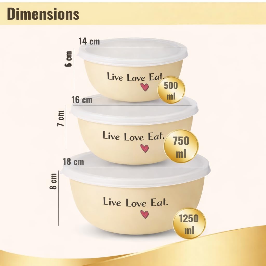 ⭐ Versatile Kitchen Use Perfect for mixing, serving, storing snacks, salads, fruits, desserts, curries, and reheating meals; ideal for home, office, and lunch storage.